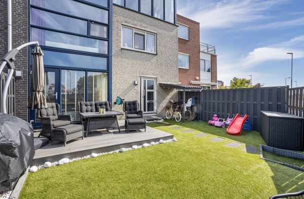 De fraai aangelegde tuin ligt op het zonnige zuidwesten en is voorzien van sierbeplanting, gras, een vlonderterras, en een buitenkraan. Hier geniet u optimaal van de zon en privacy.